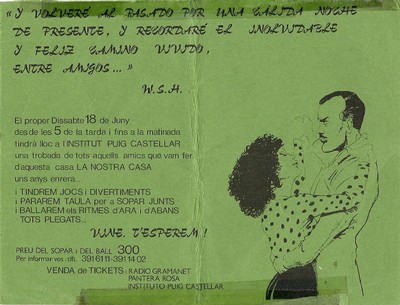 Invitació per assistir a la celebració del 15è aniversari de l'Institut Puig Castellar