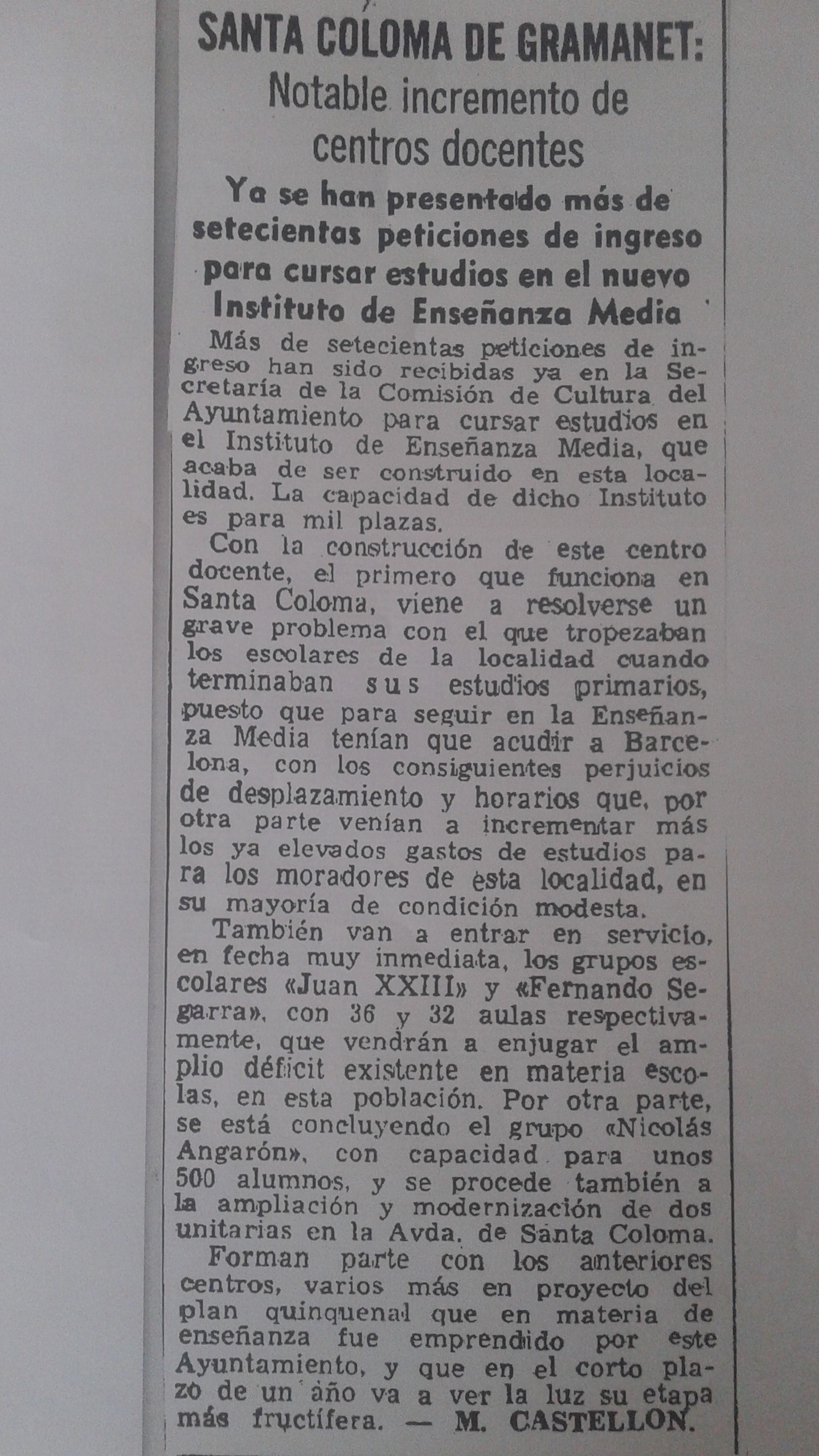 Primeres matrículesNotícia sobre les primeres matrícules a La Vanguardia del 20-9-1968https://elpuig.xeill.net/el-centre/50-anys/primeres-matricules/viewhttps://elpuig.xeill.net/el-centre/50-anys/primeres-matricules/@@download/image/Primeras matrículas.jpg