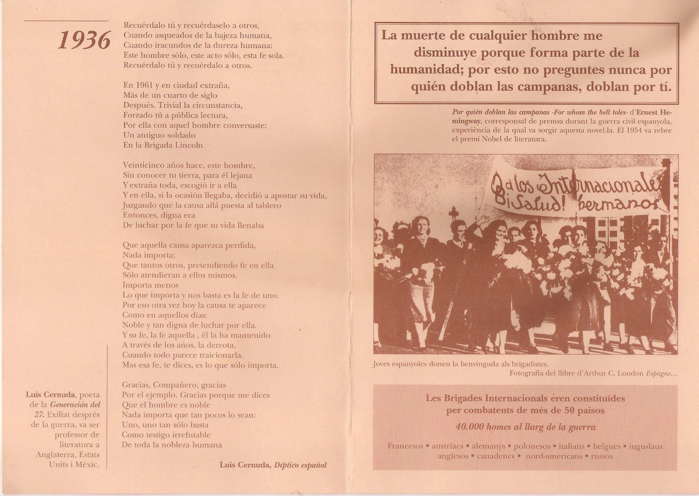 Acte d'homenatge a les Brigades Internacionals a l'Institut Puig Castellar