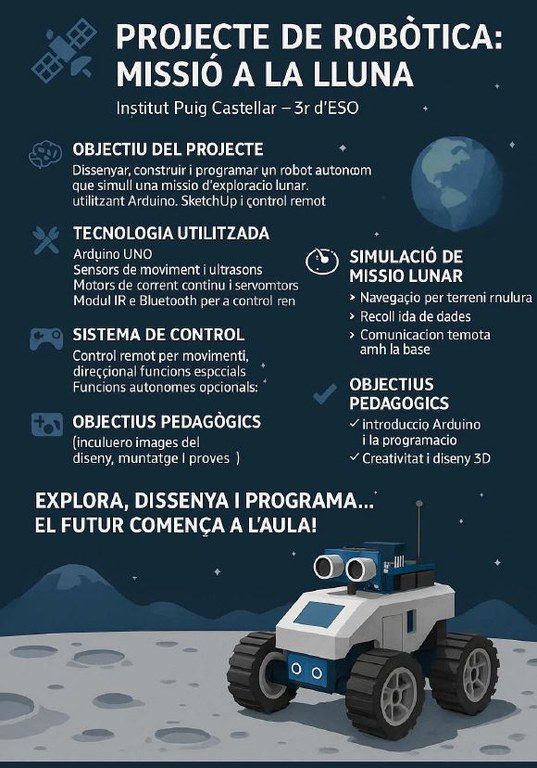 Enguany, el nostre institut ha presentat els projectes següents:Projecte d’anar a la Lluna, Robot teledirigit, Robots VEX.